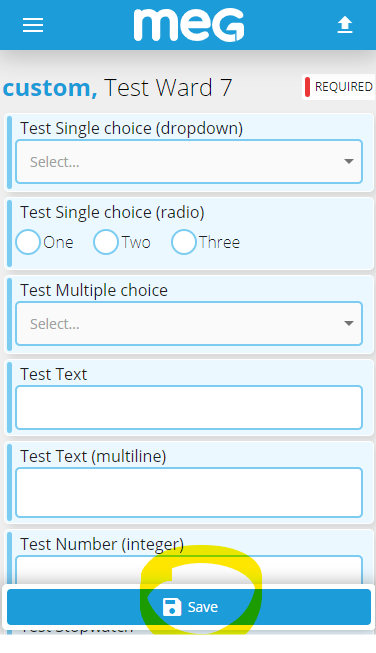 Tap “Save” to save draft version of the form. This uploads a copy to the cloud regardless of its validation status.